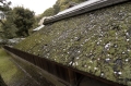 Moss and petals on a gate roof